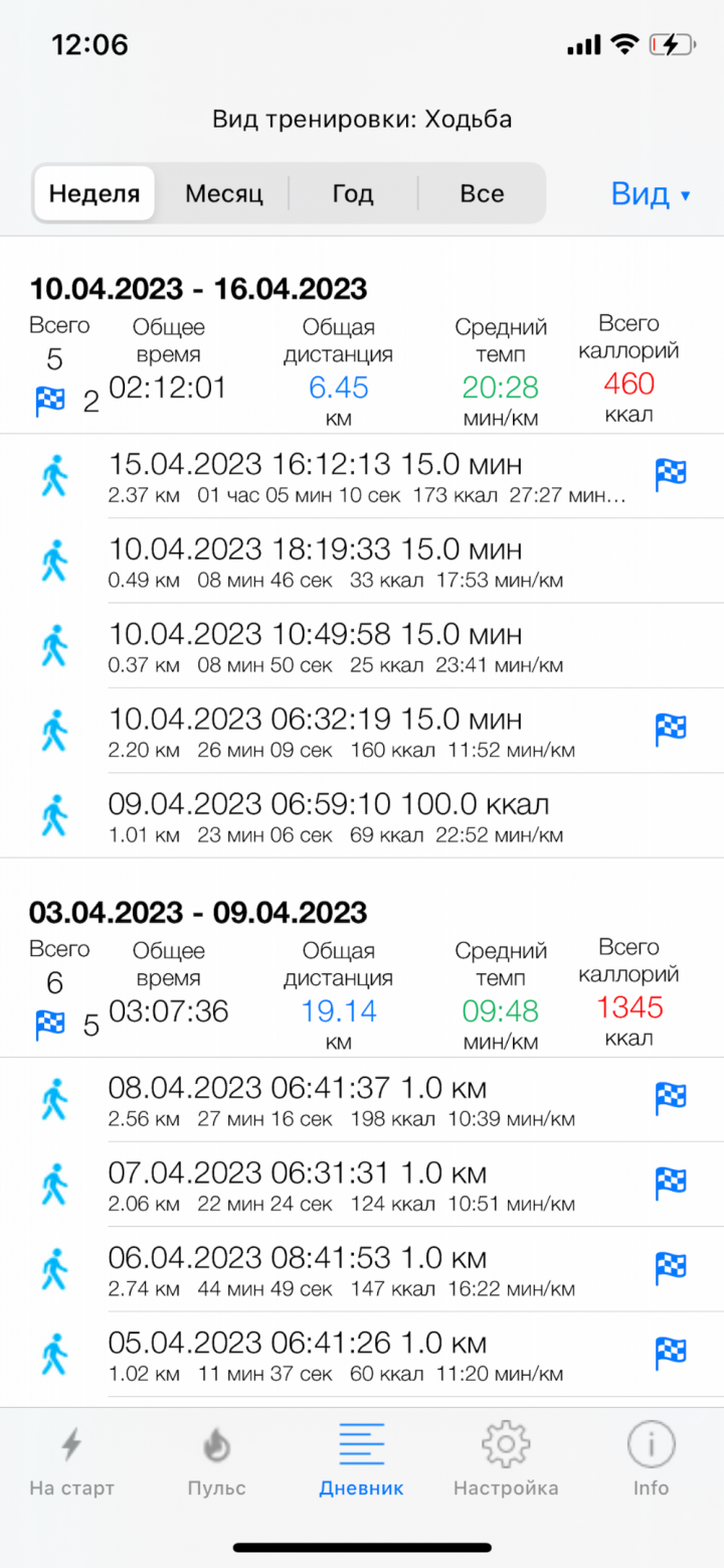 Результаты кардио тренировок также можно анализировать по неделям, месяцам и годам.