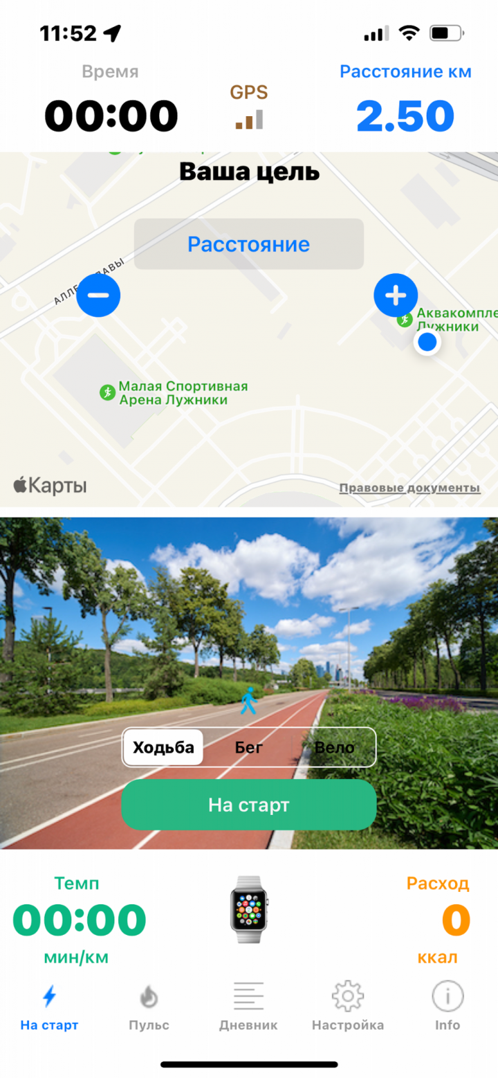 В описании приложения приведены формулы для расчета потраченных калорий для этих видов тренировок. При этом можно также отслеживать путь по реальной карте местности и анализировать скорость на различных отрезках дистанции с помощью автоматической цветовой разметки.