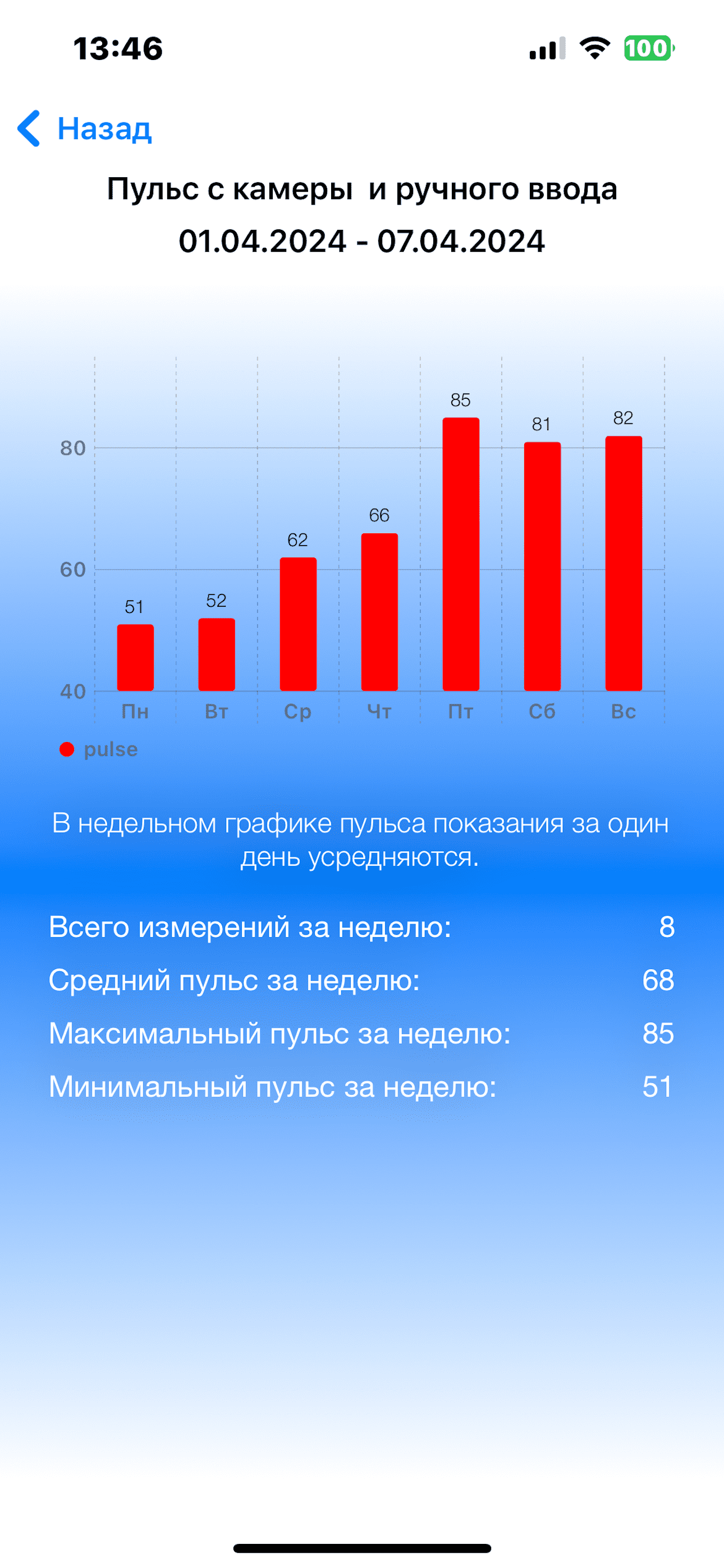Пульс (текущие показания) можно снимать камерой смартфона.