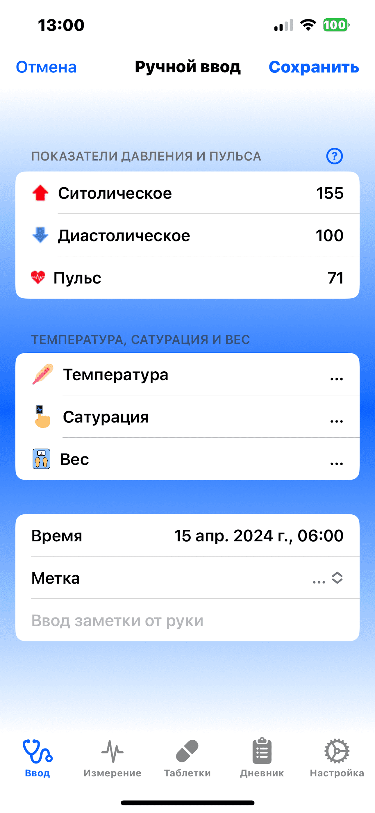 Все данные можно вводить от руки.